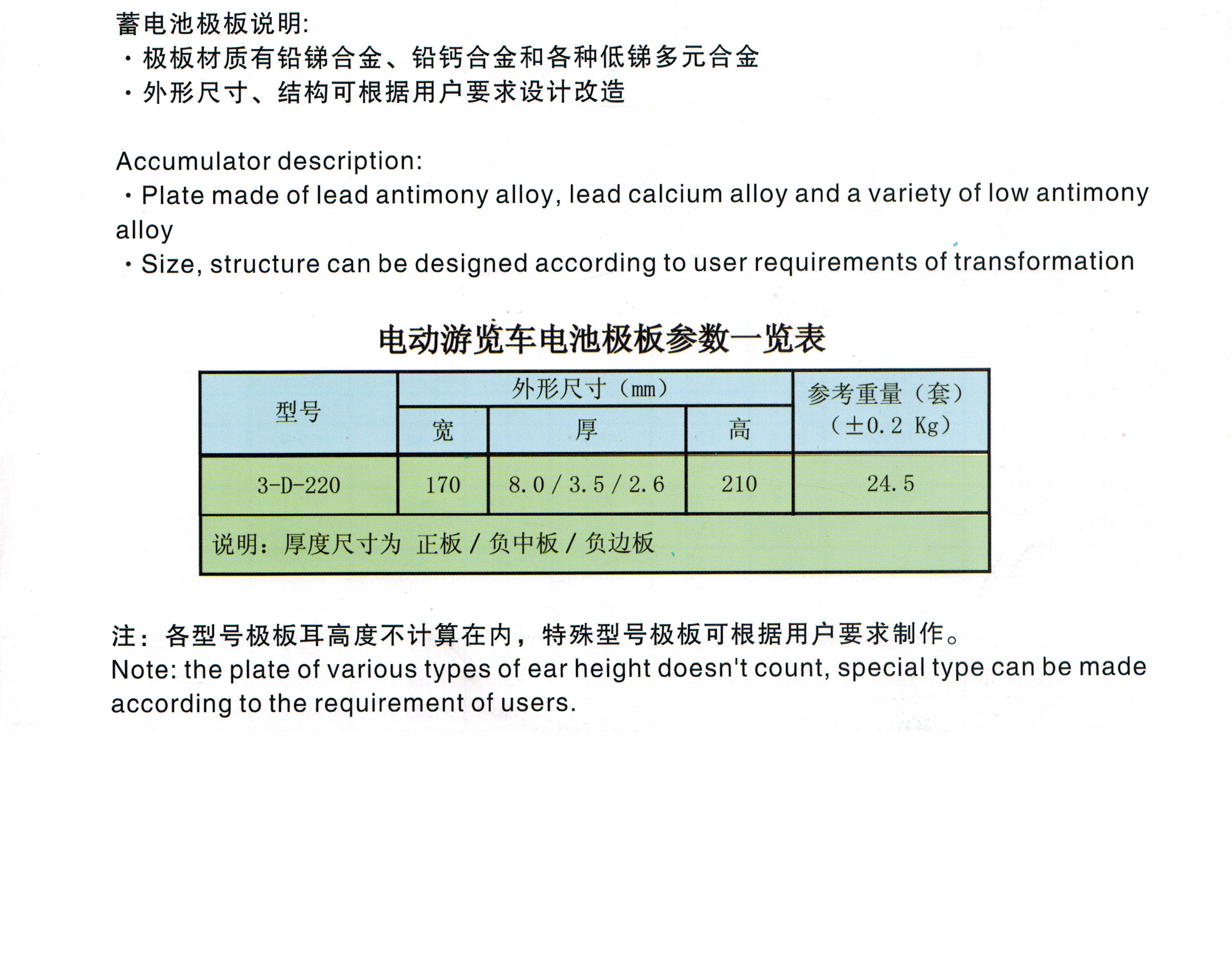 3-D-220高爾夫、游覽車專用蓄電池極板